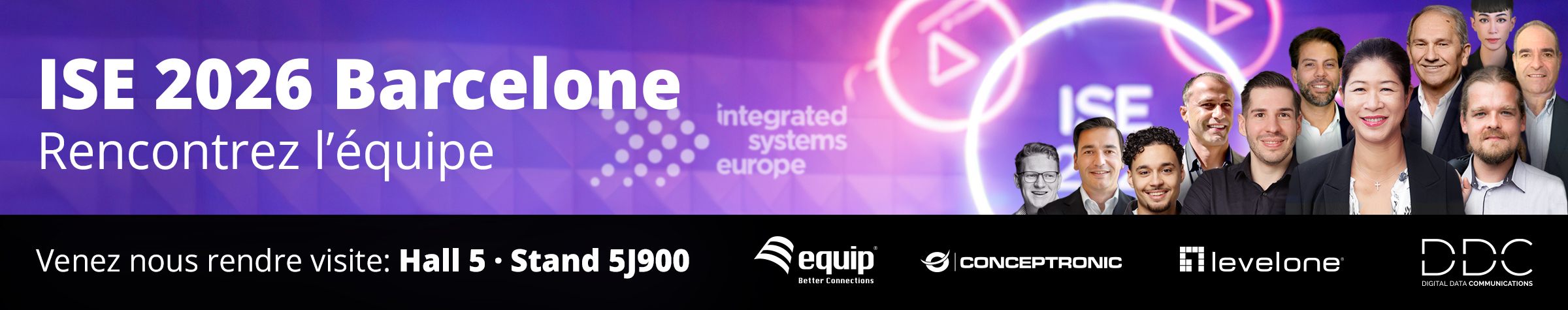 Nous sommes ravis de vous accueillir du 3 au 6 février à l'Integrated Systems Europe à Barcelone ! Venez découvrir nos dernières solutions en direct ! Ensemble, nous trouverons la solution optimale pour répondre à vos besoins !